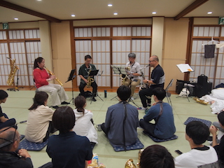 講師として毎年お願いしている井上先生、田村先生、辻本先生、林田先生にお越しいただいたほか、前年もゲスト参加いただいた管楽器調律師の和田さん、さらに「柴ネジ」の柴さん、リペアマンとしてヤマハアトリエ大阪から飯塚さん、4スタンス理論の小田島にもお越しいただきました。